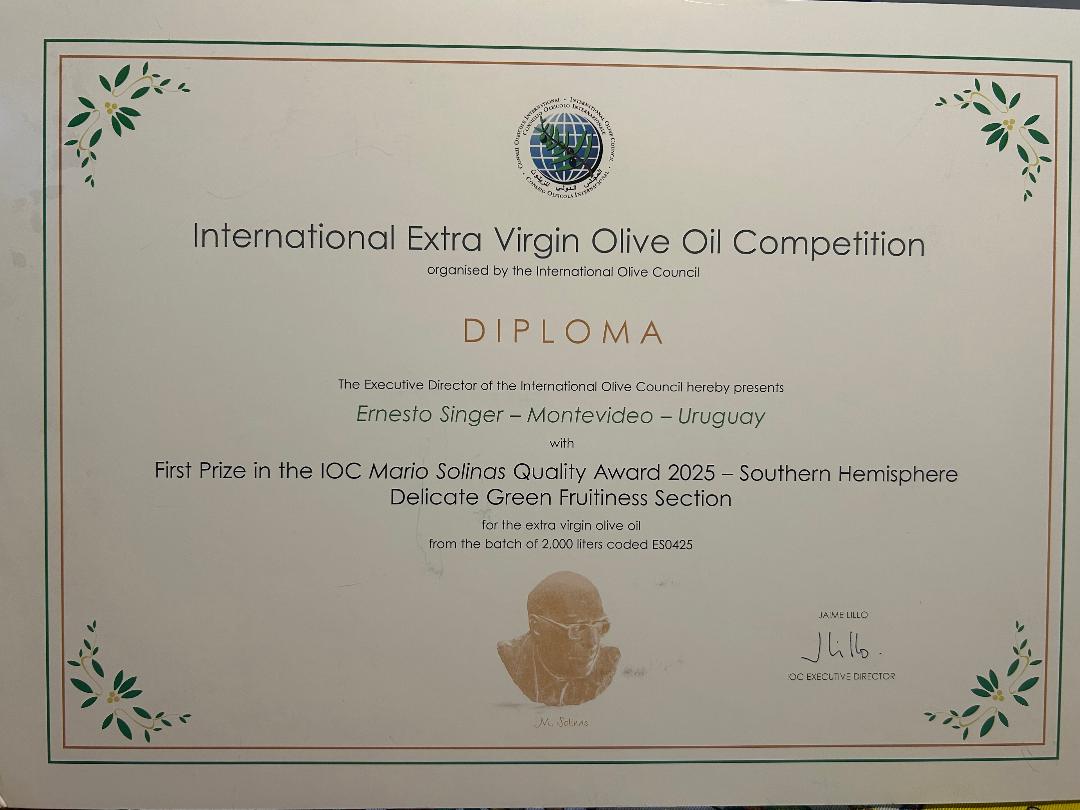 Medalla de Oro: mejor aceite de oliva en Sudamerica